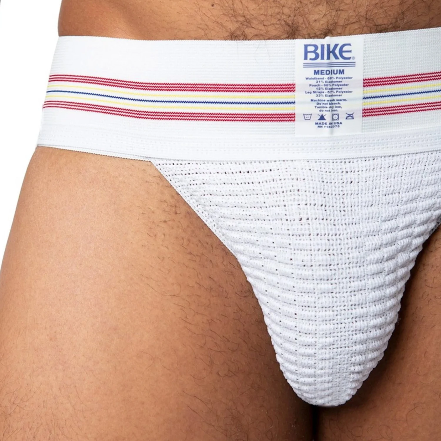 This jockstrap is soft, lightweight, breathable, and has exceptional moisture-wicking capabilities. The pouch is constructed to support you firmly and comfortably beneath all your athletic clothes. The signature BIKE® stripe on this 3″ waistband gives this jockstrap a vintage feel.