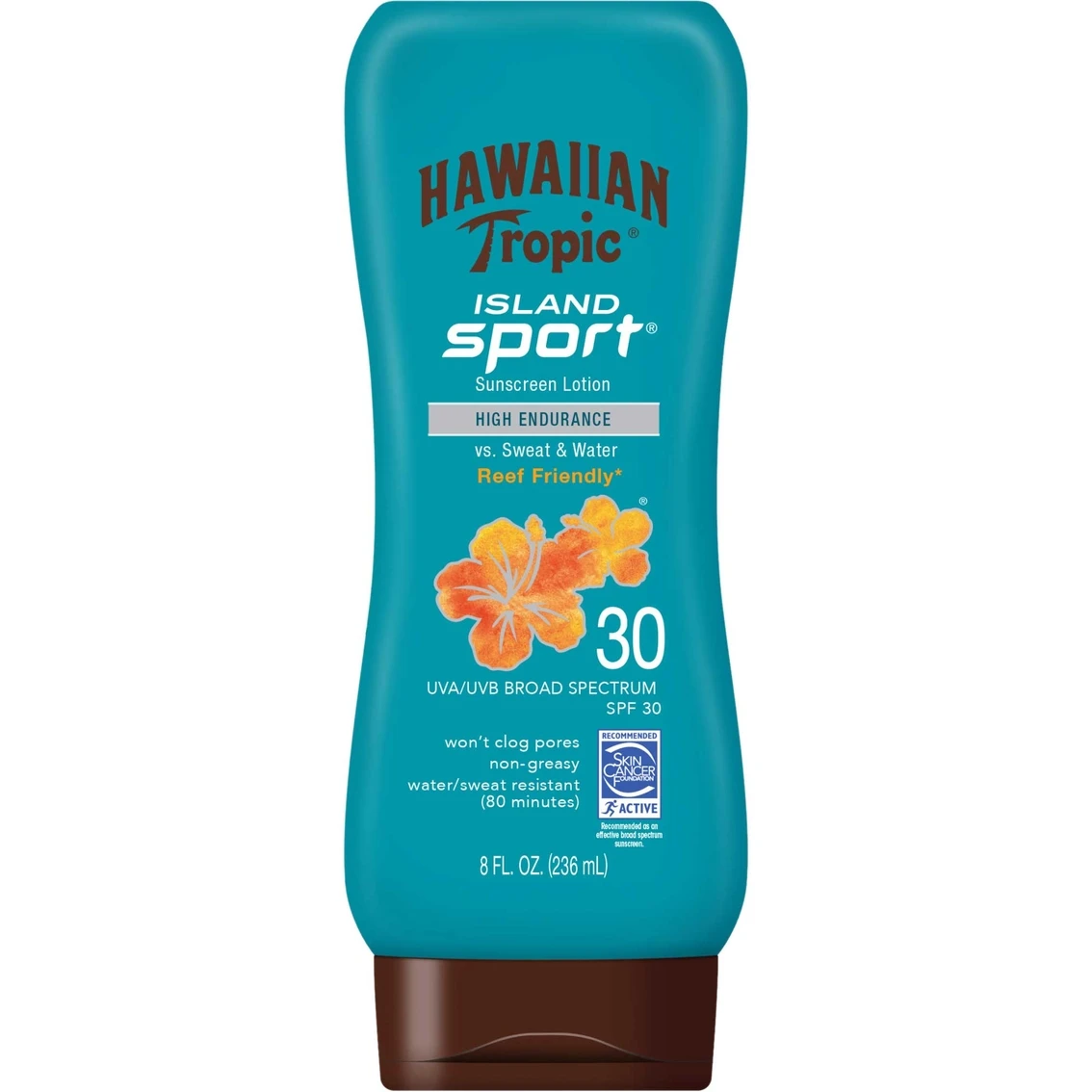 Hawaiian Tropic Island Sport Lotion Sunscreen is ultra-light, high-performance protection for that afternoon jog, beach volleyball game or mid-day tennis match. Stay protected, keep your skin looking and feeling beautiful all without feeling greasy. Hawaiian Tropic Island Sport Lotion Sunscreen offers broad-spectrum UVA and UVB protection. This breathable, ultra-light sunscreen won’t clog pores and offers a fresh tropical scent. The fast-absorbing, sweat-resistant formula won’t run into your eyes and is water resistant for up to 80 minutes. Recommended by the Skin Cancer Foundation Model: 08987.