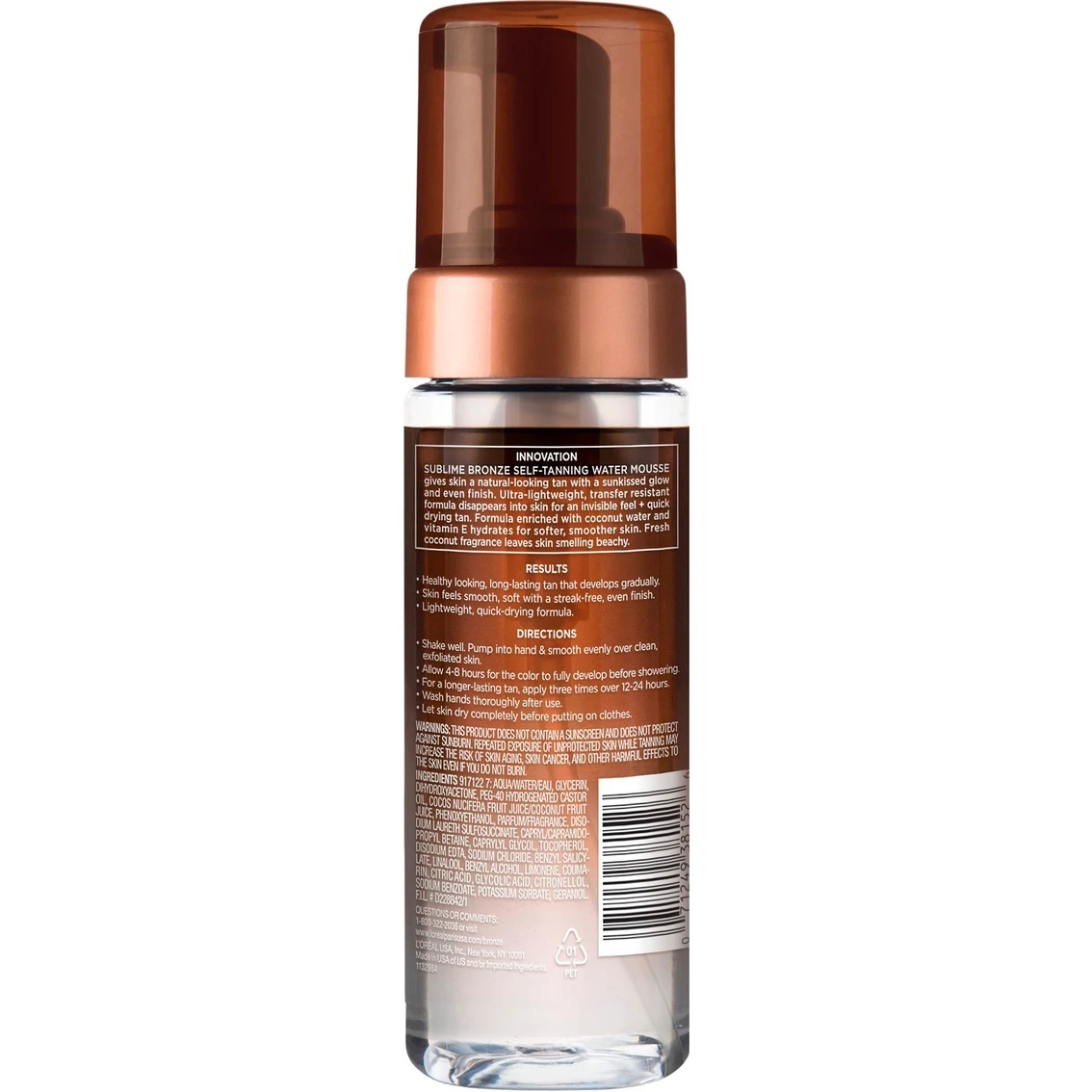 L’Oreal Paris Sublime Bronze Hydrating Self-Tanning Water Mousse instantly provides a natural-looking tan, sunkissed glow and even finish. Size: 5 oz.