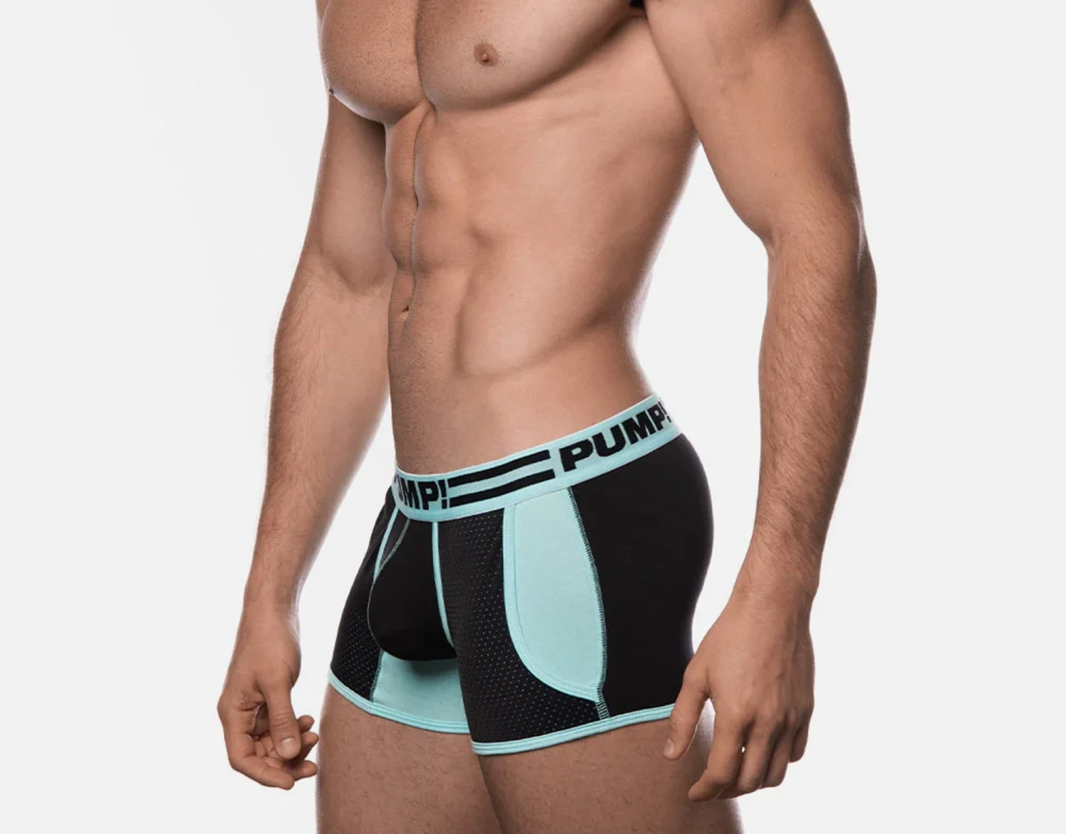 Youthful, fun, and icy hot, PUMP! Hypotherm Jogger is the perfect boxer for an athletic and active lifestyle. Fully supportive, the Hypotherm Jogger is devised of a full cotton body with mesh pockets that hold and shape the body. Its aqua and black fused color palette brings forth a fresh and cool look that is perfect for a beautiful summer morning or a wild winter night.