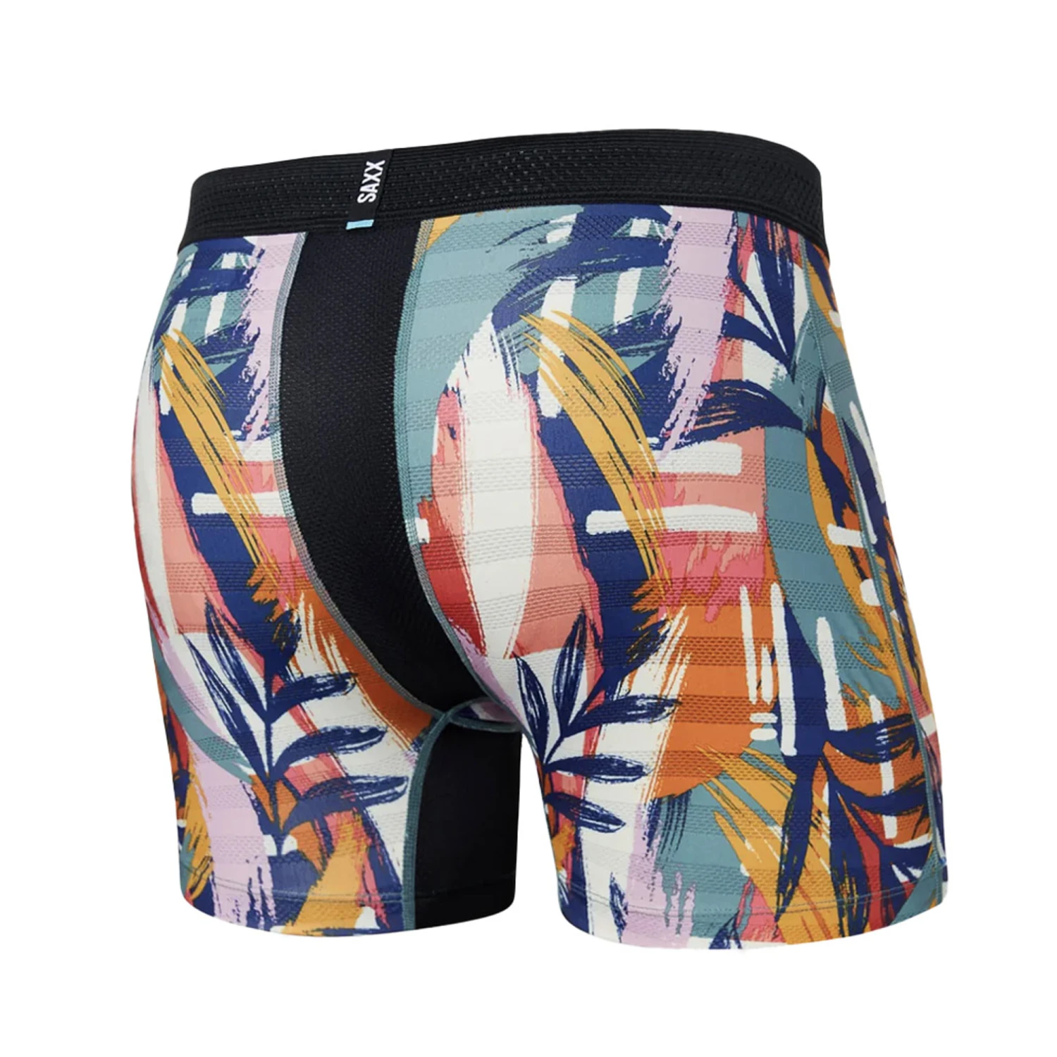 The Saxx DropTemp™ Cooling Technology wicks sweat quicker than the “experts” in cooling. Cool just got cooler. DropTemp™ boosts your body’s natural cooling capacity by (drumroll) evaporating your sweat. (Ta da!) It’s the whole package when it comes to keeping yours cooler. This Surf Safari Boxer Brief is the perfect look for summer fun.