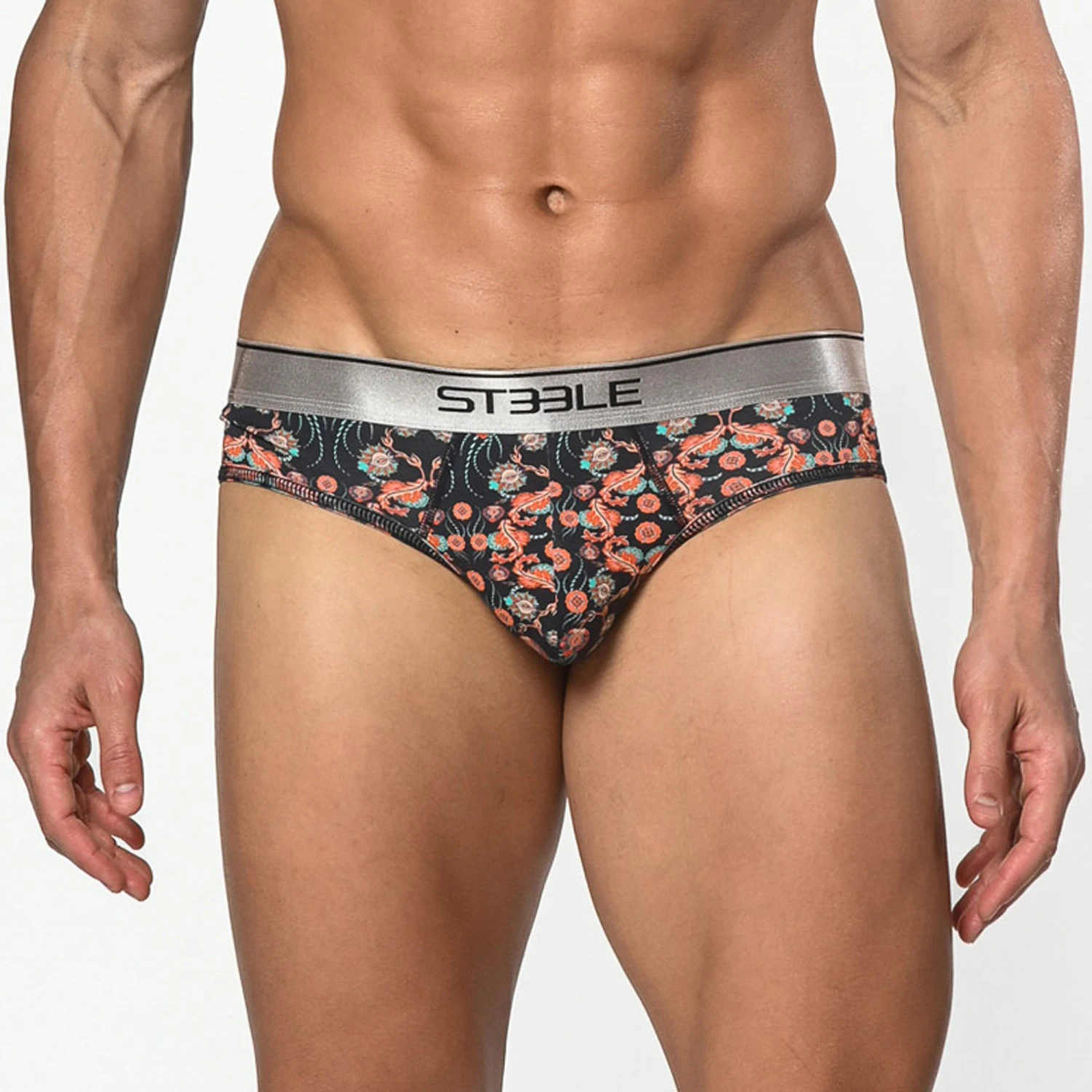 St33le – Cotton Print Low Rise Brief – Navy/Coral Paisley