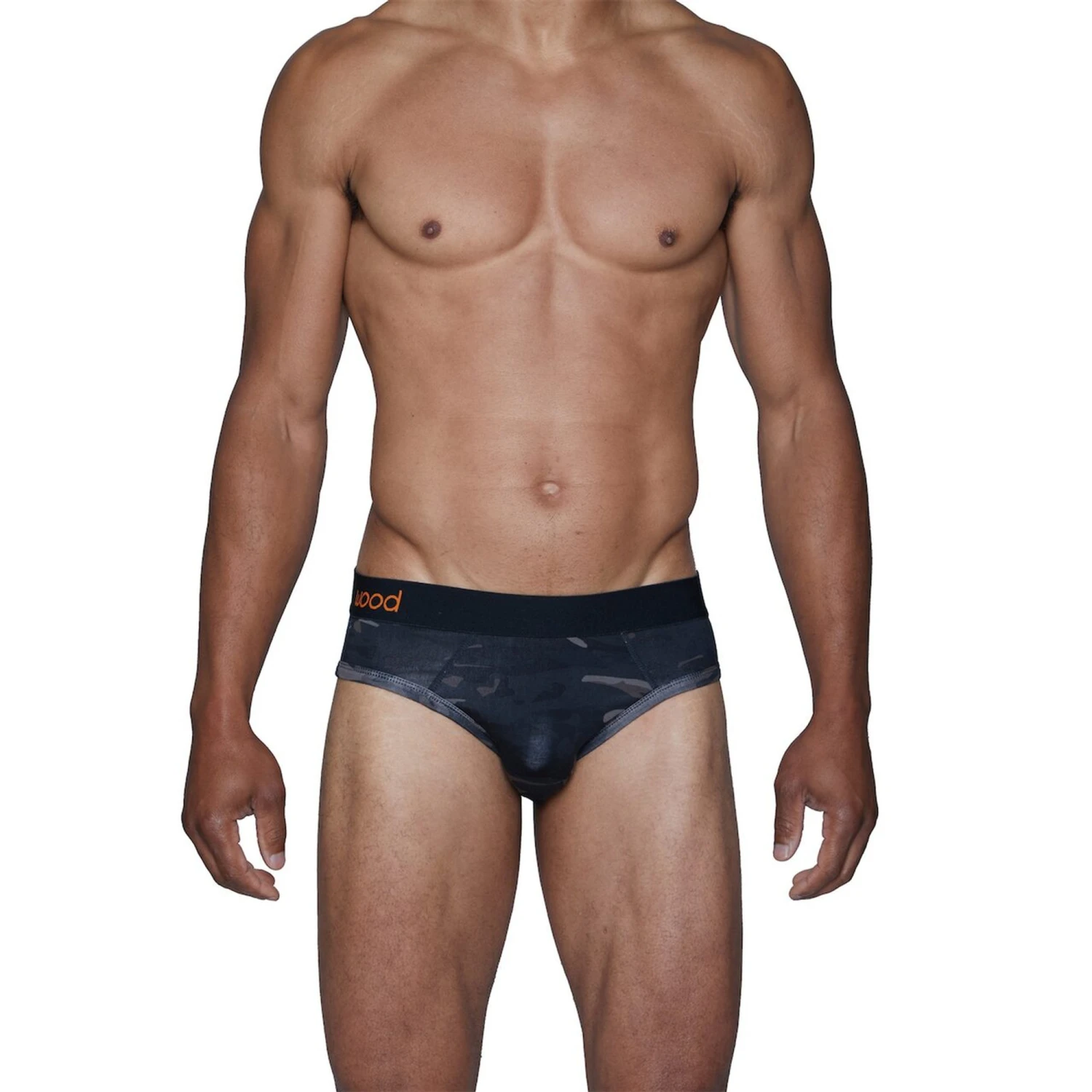 Show more. Wear less. It’s hip. The Wood Hip Brief in our custom “camo”.